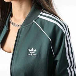 Coupon 😉 Veste Zippée A Bandes Femme HN5890 Vert de Adidas Originals ✨
