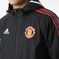 Coupon 🤩 Veste Zippée Capuche A Bandes Manchester United FC H64034 Noir de Adidas Performance 🎁