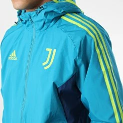 De gros 🌟 Veste Zippée Capuche A Bandes Juventus HA2646 Turquoise de Adidas Performance 🌟