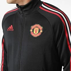 De gros 🔥 Veste Zippée A Bandes Manchester United FC DNA HE6671 Noir de Adidas Performance 🔔